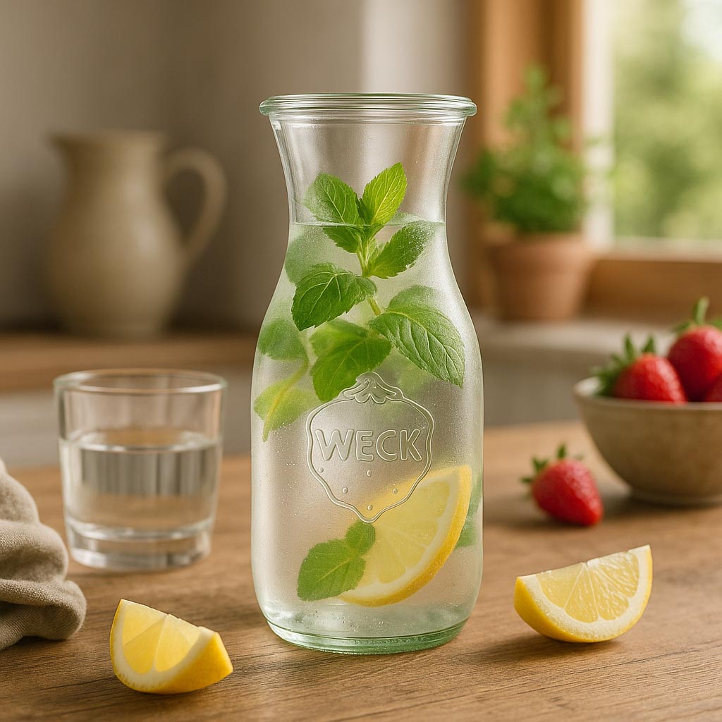Заобленото гърло на WECK е съществена характеристика на традиционните бутилки за сок. То позволява лесно и надеждно затваряне с помощта на стъклен капак, гумена лента и характерните щипки за консервиране. Равномерната, заоблена форма на гърлото осигурява оптимално уплътнение и лесно почистване. В нашия асортимент ще намерите подходящи капаци и гумени ленти WECK за различни бутилки и приложения.