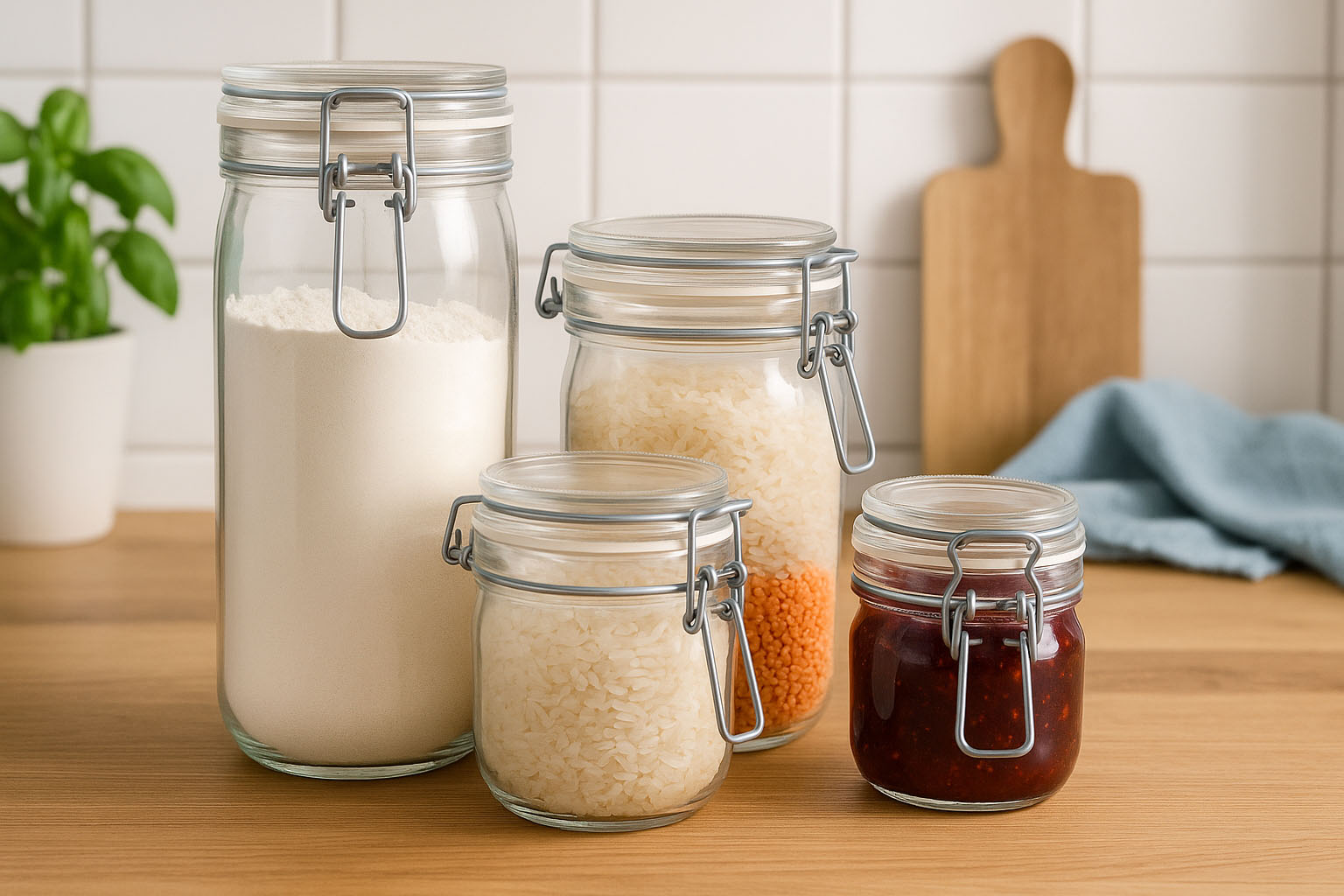 Благодарение на доказания механизъм за затваряне, серията „Fido“ е отлично подходяща за консервиране, съхранение и складиране на храни. От домашни конфитюри и консерви до сухи съставки като брашно, захар или подправки – бурканите надеждно запазват свежестта и аромата. Също така, „Fido“ е перфектният избор за креативно представяне на домашни специалитети или като устойчива опаковка за деликатеси.