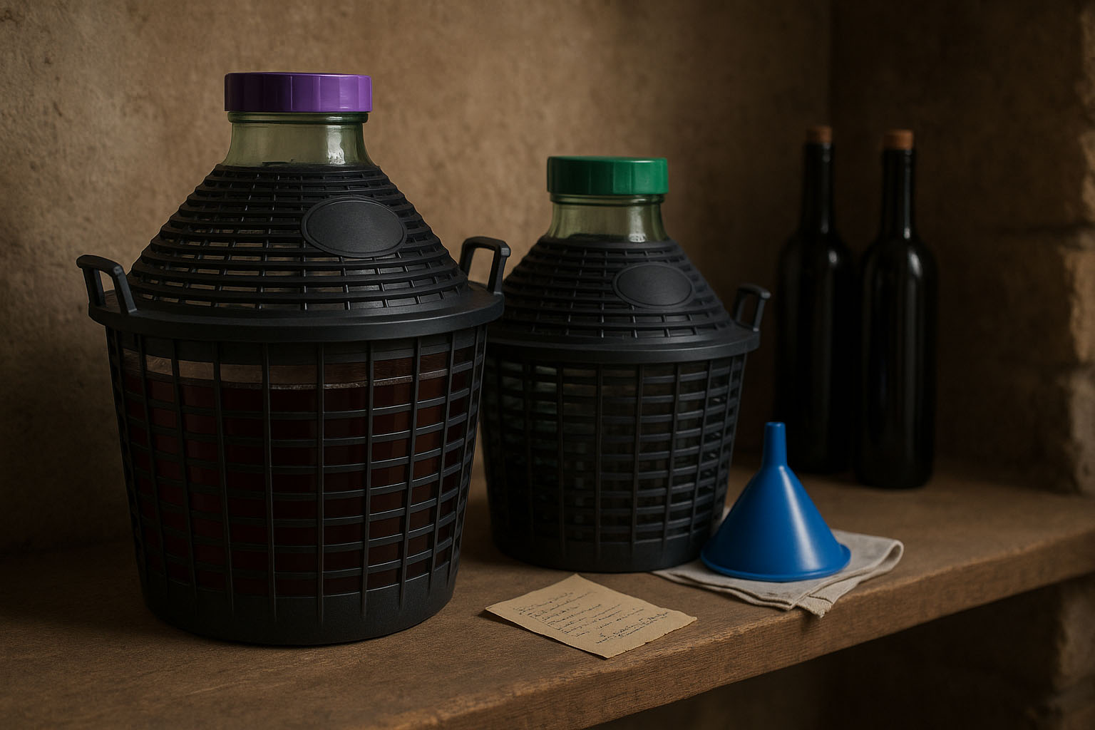 Бутилките с широк врат са идеалният избор за безопасно и стилно съхранение на течности. Техният просторен широк врат позволява лесно пълнене и почистване, докато здравата пластмасова кошница осигурява допълнителна защита и удобство при боравене. Предлагат се в обеми от 5 до 34 литра, като предоставят универсално решение за различни приложения. Особено подходящи са за приготвяне и съхранение на вина, ликьори, спиртни напитки и други качествени течности. Класическата им форма осигурява равномерно отлежаване и запазва аромата за дълго време.