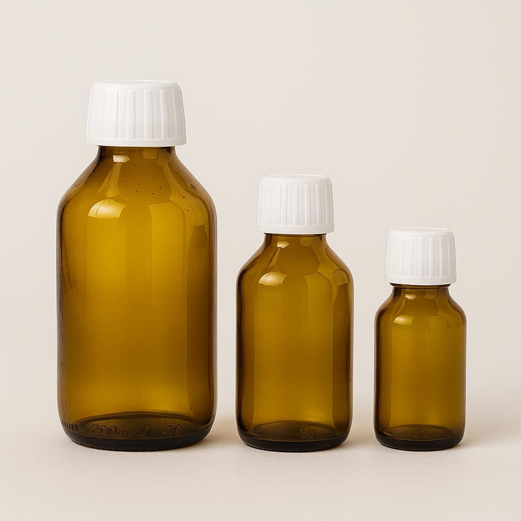 Кафявата медицинска бутилка съчетава функционална сигурност с вечен дизайн и предлага идеално решение за фармацевтични и козметични продукти. Кръглата й основа осигурява класически вид и добра стабилност, докато оцветеното стъкло предоставя отлична защита от светлина и предпазва съдържанието от вредни външни влияния. С обем от 50 до 1000 мл, тази бутилка е подходяща за разнообразни приложения. Стандартизираният отвор PP 28 позволява сигурно запечатване и може да се комбинира с капачки от нашия асортимент. Тази висококачествена медицинска бутилка символизира защита, качество и професионална презентация на продукта.