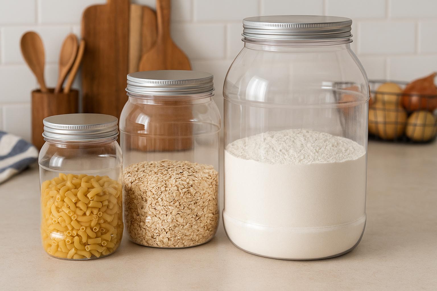 Серията Lulu предлага иновативно и практично решение за безопасно съхранение на храни и други продукти. Тези PET контейнери, подходящи за контакт с храни, впечатляват с издръжливата си изработка и универсална употреба. Благодарение на ниското си тегло и високата стабилност, те са идеални за ежедневна употреба. С вместимост от 1000 до 4000 мл, те предлагат достатъчно място за различни съдържания. Винтовият отвор 100/400 осигурява надеждно запечатване, като подходящи капаци са налични в нашия асортимент. Lulu съчетава функционалност, качество и многообразие и е перфектният избор за хигиенично и безопасно съхранение.
