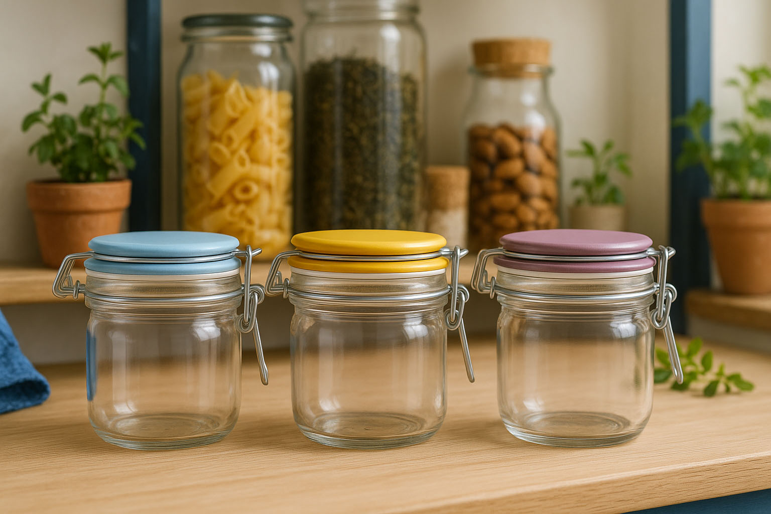 Серията „Fido“ съчетава класически дизайн с функционална многостранност. Произведено от известния италиански производител Bormioli Rocco, това стъкло с метален капак впечатлява с висококачествената си изработка и дълготрайно качество. Всяко стъкло се доставя със стабилен метален капак, стъклен капак и гумена уплътнителна лента, което гарантира херметично запечатване. Освен това капаците са налични в различни цветове – синьо, жълто, зелено, розово и лилаво – придавайки индивидуален почерк на всяко стъкло.