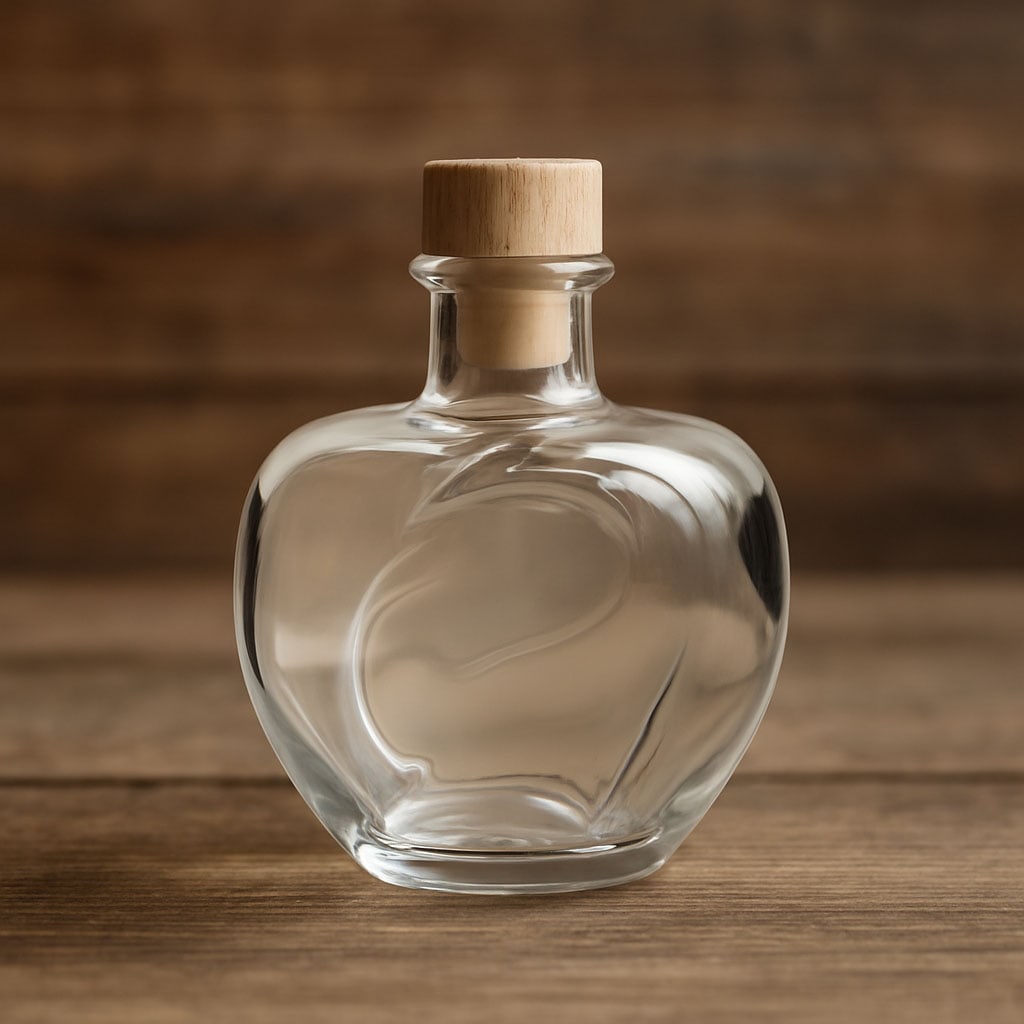 Бутилката с мотив „Ябълка“ впечатлява с уникалната си форма на ябълка и е перфектният избор за изискани плодови ракии и ликьори. Нейният детайлен дизайн от висококачествено прозрачно стъкло подчертава естествения характер на съдържанието и я прави истински акцент. Корковото гърло осигурява стилно и сигурно запечатване, докато хармоничната форма подчертава стойността на продукта.