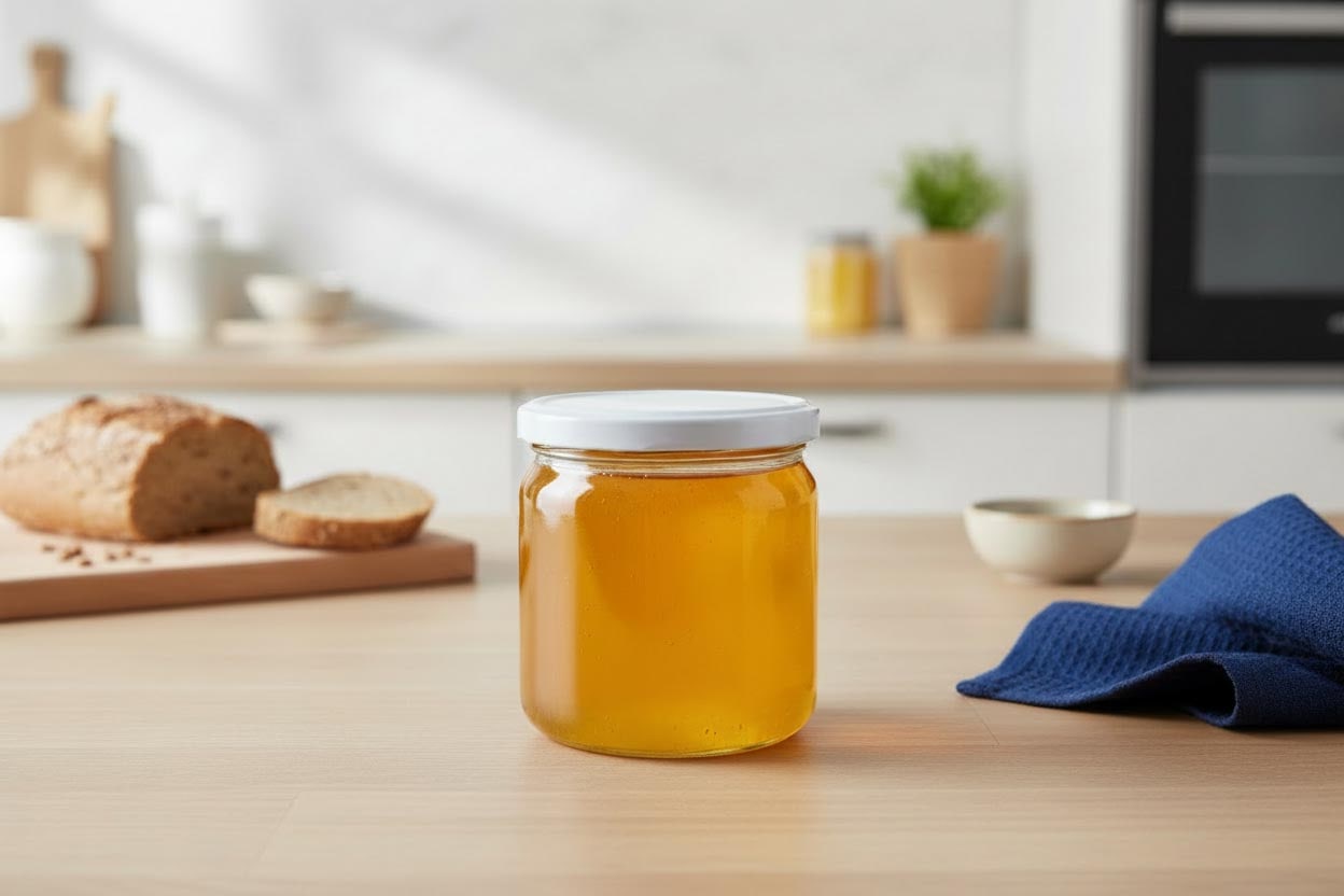 Продуктовата серия "Кръгло стъкло" на Flaschenland включва висококачествени буркани за мед с вместимост 388 мл и практична капачка с винт (TO 82), специално разработени за безопасно и хигиенично съхранение на храни. Основната характеристика на тази серия е комбинацията от здраво стъклено тяло и многофункционална употреба. Контейнерите от серията Кръгло стъкло се отличават със своята устойчивост на студ, топлина и микровълнова печка, което ги прави идеални както за съхранение в хладилник, така и за затопляне в микровълнова печка. Освен това са подходящи за миене в съдомиялна машина, което гарантира лесно почистване. С вместимост от 388 мл те предлагат достатъчно място за мед, сладко, песто, колбаси или мариновани продукти.