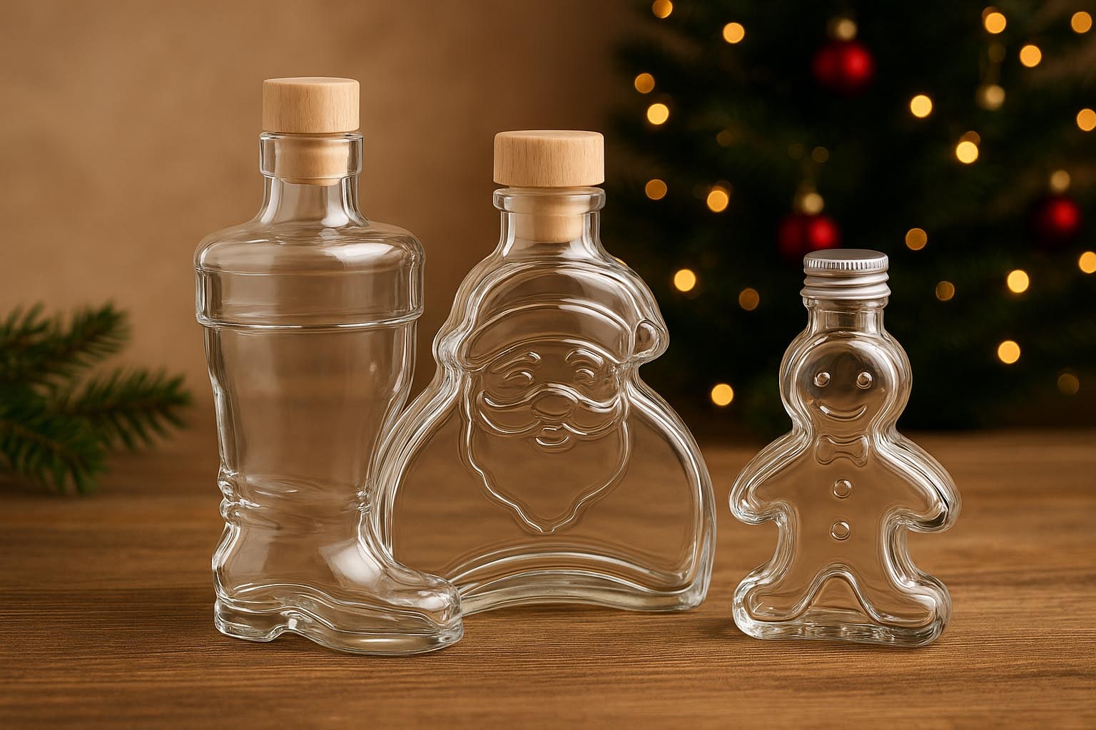 Нашите разнообразни специални бутилки като „Ева“ и „Адам“, „Щастливо прасенце“, „Коледно дърво“ и „Дядо Коледа“ олицетворяват вечна елегантност и поставят високи стандарти в качеството и дизайна. Всяка бутилка впечатлява с характерен, често грижливо изработен мотив и висококачествена изработка, която убеждава както професионални потребители, така и частни клиенти с усет за естетика. Контейнерите са налични в различни размери от 40 мл до 500 мл и предлагат стилно решение за сигурно и херметично съхранение на спиртни напитки, ликьори и други напитки с корков, PP или щипков затвор.