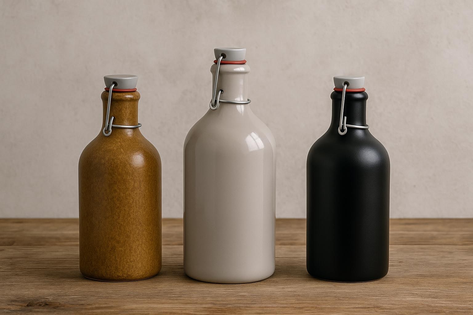 Отделно предлаганият капак с метална закопчалка и гумена уплътнителна лента осигуряват херметично затваряне на глинената кана. Идеален за напитки, оцети и масла, той запазва свежестта и придава на бутилките носталгичен чар. Лесен за отваряне и затваряне, капакът с метална закопчалка предлага надеждно и дълготрайно решение.