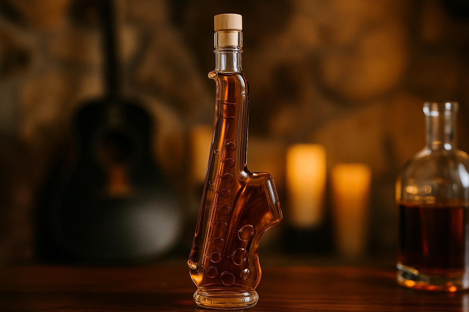 Бутилката с мотив „Саксофон“ съчетава артистичен дизайн с висококачествено стъкло и внася музикална страст в стилна форма. Нейната извита силует и детайлна изработка я правят изключително привлекателна. Независимо дали е подарък за любител на джаза или декоративна бутилка за ексклузивни спиртни напитки – тя придава специален акцент и придава уникален характер на всяко съдържание.