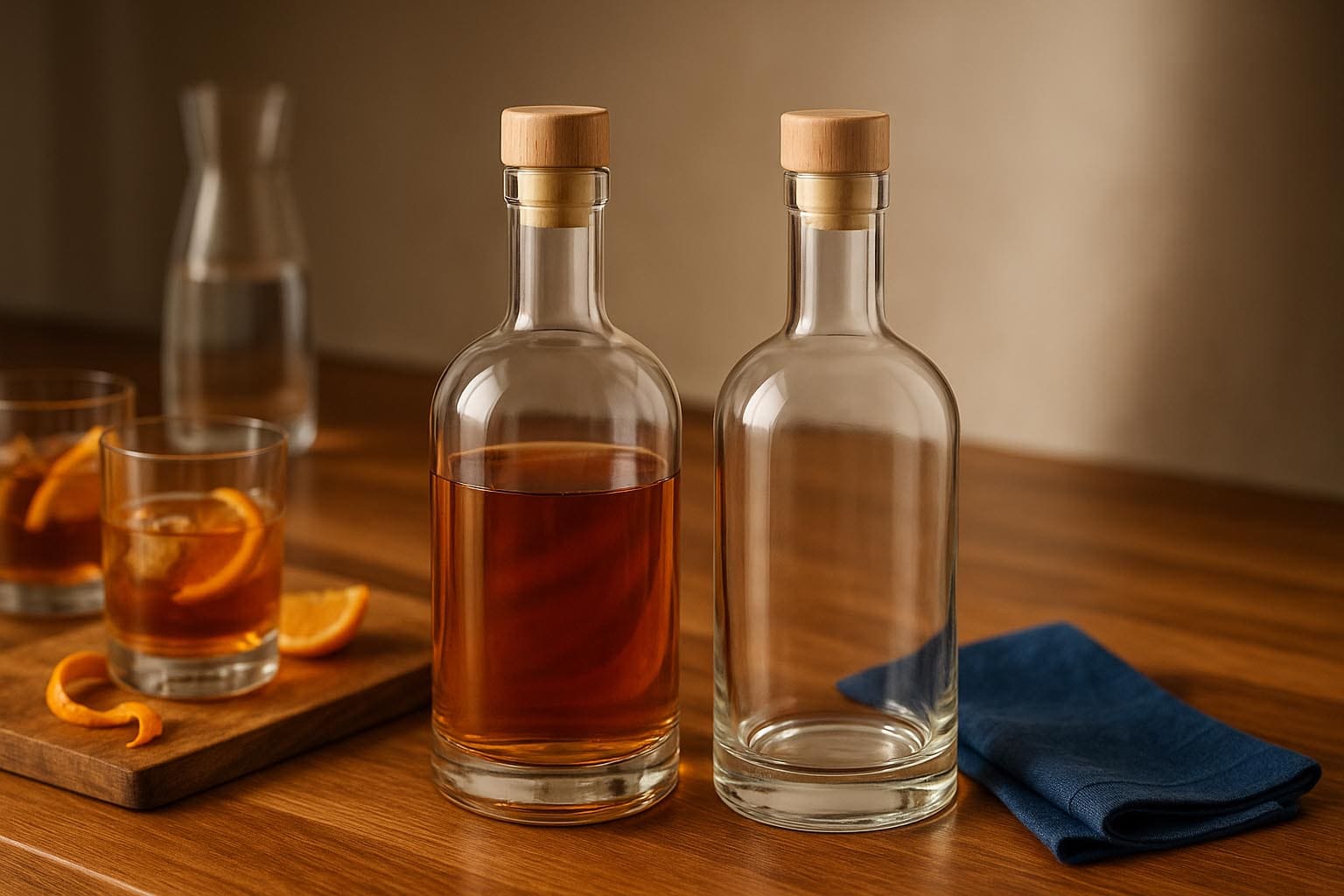 Дизайнерската бутилка Franco съчетава италианско майсторство с вечна елегантност и предлага стилно решение за висококачествени спиртни напитки, ликьори, сиропи и други изискани продукти. Налична в размери 500 и 700 мл, тя впечатлява с чисти линии и хармонична форма, която перфектно подчертава всяко пълнене. Класическото корково гърло осигурява сигурно и стилно запечатване – подходящи капачки са налични в нашия асортимент. С висококачествената си изработка и минималистичен дизайн, Franco е идеалният избор за марки, които искат да съчетаят ексклузивност и елегантност в една бутилка.